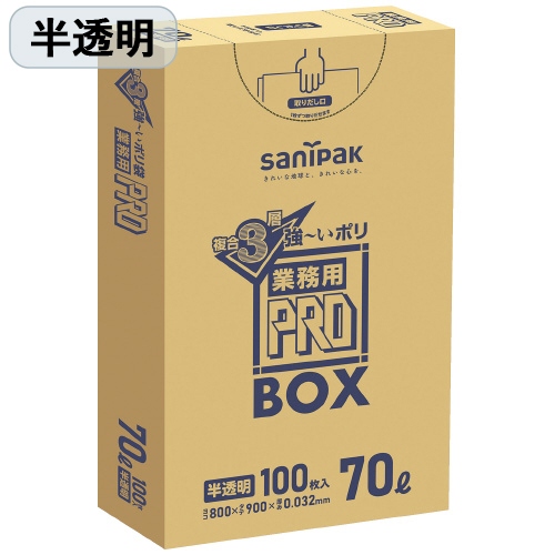 3層ゴミ袋業務用PRO 70L 半透明 100枚 PA73