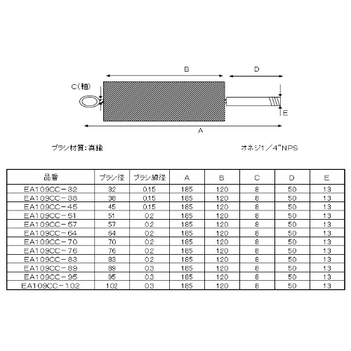 ●ブラシ径…102mm●ねじサイズ…1/4’’NPS●材質…真鍮●異物を掻き落としたり、取り除く作業に便利です。●シングルねじり、ダブルステム型●EA109CA-1、EA109CB-1、旧EA109CA用●参考在庫数・商品詳細・サイズ情報はメーカー(参考)URLからもご確認いただけます。 ●最小出荷単位: 1