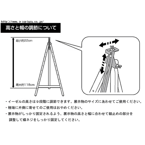 ●メーカー…アイリスオーヤマ(IRIS OHYAMA)●型番…ESL-1●サイズ(W×D×H)mm…610×570×1110●重量(g)…1500●材質…天然木、スチール●パネル適合サイズ…高さ220~1180mm、幅200~800mm、厚さ30mm以下のボード ●耐荷重…約5kg●色…ダークブラウン●高さ9段階調節●天然木を使用したイーゼルです。店頭でメニューボードを立てたり、室内でボードを飾るのに最適です。●ボードの大きさ・厚さを合わせて額止めを調節し、ボードをしっかりと固定できます。●参考在庫数・商品詳細・サイズ情報はメーカー(参考)URLからもご確認いただけます。 ●最小出荷単位: 1