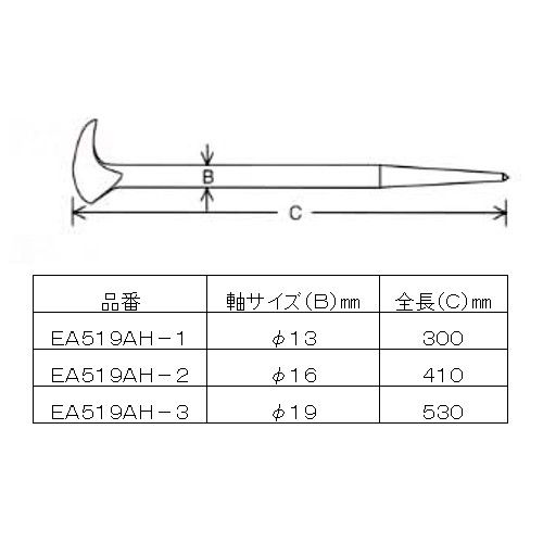 ●材質…ハイカーボンスチール●全長…530mm●先端幅…21mm●軸径…19mm●重量…895g●頑丈な鍛造ヘッド●黒色酸化仕上げで錆を防止します。●先端が曲がっているため、狭い場所でもテコの力が作用します●もう一方の端は整えるのに適しています。●※使用の際は保護メガネをつけて下さい。●参考在庫数・商品詳細・サイズ情報はメーカー(参考)URLからもご確認いただけます。 ●最小出荷単位: 1