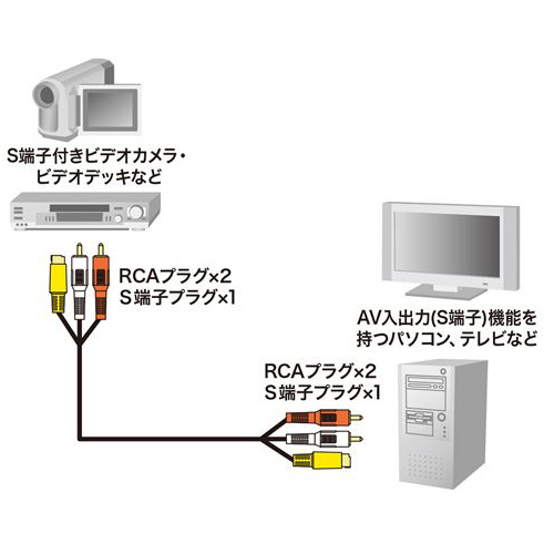 S端子(映像用)+ピンプラグ(音声用)のビデオケーブル