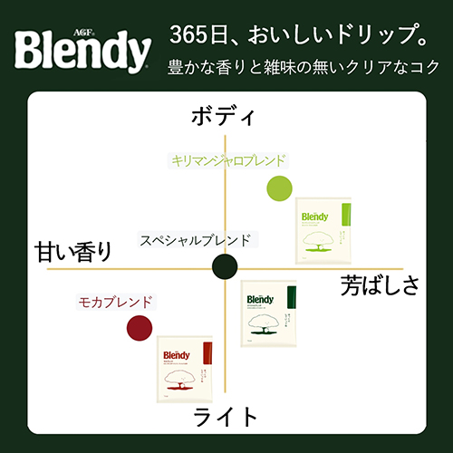 ●種別:キリマンジャロ・ブレンド●入数:100袋●内容量(個装):7g●湯量目安:約180mL●ブランド:AGF ブレンディ●カテゴリー:ドリップコーヒー●軽減税率:対象●製造国:タンザニア/ブラジル/他●メーカーの都合によりパッケージや仕様などが変更になる場合がございますので、あらかじめご了承ください。 ●最小出荷単位: 1
