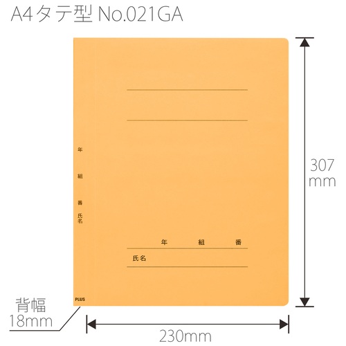 ●外形寸法(縦)[mm]:307●外形寸法(横)[mm]:230●色:イエロー●背幅[mm]:18●穴数[穴]:2●穴間隔[mm]:80●規格:A4-S●材質:表紙=ファイルカード紙(ノンステッチ加工)、とじ具=ポリプロピレン(3つ山ストッパー)●年・組・番・氏名の記入欄付 ●最小出荷単位: 1