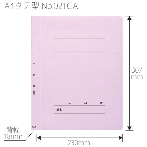 ●外形寸法(縦)[mm]:307●外形寸法(横)[mm]:230●色:バイオレット●背幅[mm]:18●穴数[穴]:2●穴間隔[mm]:80●規格:A4-S●材質:表紙=ファイルカード紙(ノンステッチ加工)、とじ具=ポリプロピレン(3つ山ストッパー)●年・組・番・氏名の記入欄付 ●最小出荷単位: 1