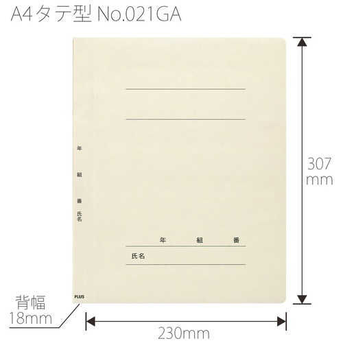 ●外形寸法(縦)[mm]:307●外形寸法(横)[mm]:230●色:アイボリー●背幅[mm]:18●穴数[穴]:2●穴間隔[mm]:80●規格:A4-S●材質:表紙=ファイルカード紙(ノンステッチ加工)、とじ具=ポリプロピレン(3つ山ストッパー)●年・組・番・氏名の記入欄付 ●最小出荷単位: 1