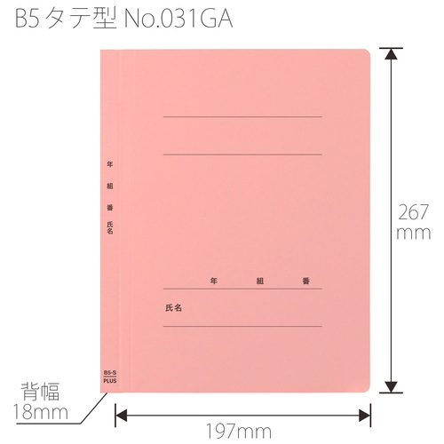 ●外形寸法(縦)[mm]:267●外形寸法(横)[mm]:197●色:ピンク●背幅[mm]:18●穴数[穴]:2●穴間隔[mm]:80●規格:B5-S●材質:表紙=ファイルカード紙(ノンステッチ加工)、とじ具=ポリプロピレン(3つ山ストッパー)●年・組・番・氏名の記入欄付 ●最小出荷単位: 1