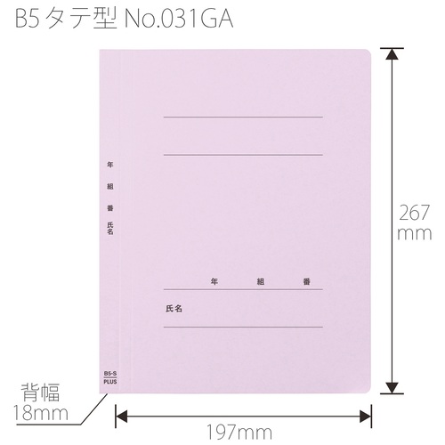 ●外形寸法(縦)[mm]:267●外形寸法(横)[mm]:197●色:バイオレット●背幅[mm]:18●穴数[穴]:2●穴間隔[mm]:80●規格:B5-S●材質:表紙=ファイルカード紙(ノンステッチ加工)、とじ具=ポリプロピレン(3つ山ストッパー)●年・組・番・氏名の記入欄付 ●最小出荷単位: 1