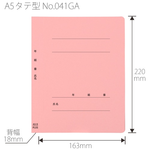 ●外形寸法(縦)[mm]:220●外形寸法(横)[mm]:163●色:ピンク●背幅[mm]:18●穴数[穴]:2●穴間隔[mm]:80●規格:A5-S●材質:表紙=ファイルカード紙(ノンステッチ加工)、とじ具=ポリプロピレン(3つ山ストッパー)●年・組・番・氏名の記入欄付 ●最小出荷単位: 1
