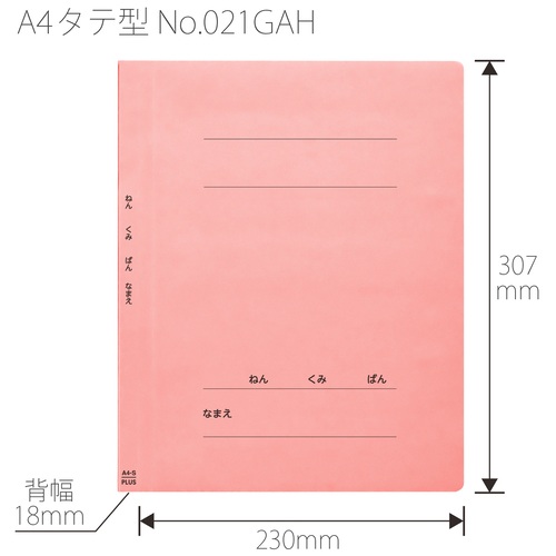 ●外形寸法(縦)[mm]:307●外形寸法(横)[mm]:230●色:ピンク●背幅[mm]:18●穴数[穴]:2●穴間隔[mm]:80●規格:A4-S●材質:表紙=ファイルカード紙(ノンステッチ加工)、とじ具=ポリプロピレン(3つ山ストッパー)●小学校低学年向き●ねん・くみ・ばん・なまえの記入欄付 ●最小出荷単位: 1