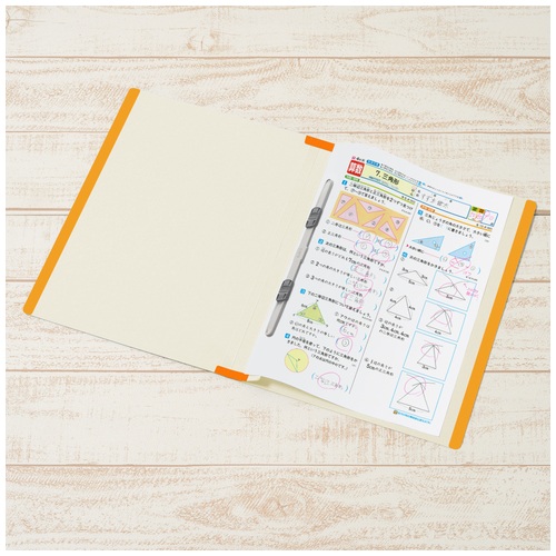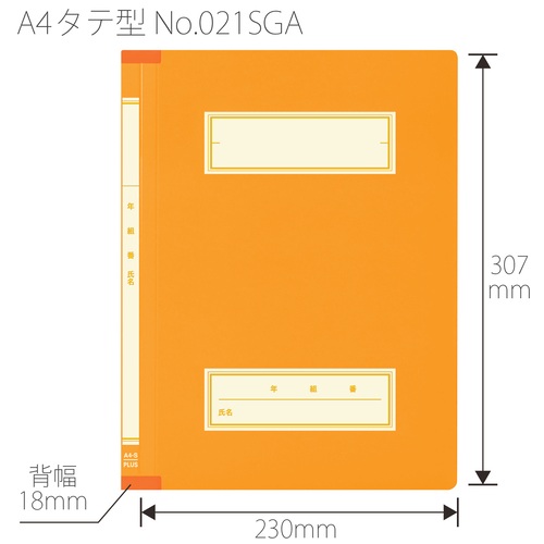 ●外形寸法(縦)[mm]:307●外形寸法(横)[mm]:230●色:オレンジ●背幅[mm]:18●穴数[穴]:2●穴間隔[mm]:80●規格:A4-S●材質:表紙=ファイルカード紙(ノンステッチ加工)、とじ具=ポリプロピレン(3つ山ストッパー)●年・組・番・氏名の記入欄付 ●最小出荷単位: 1