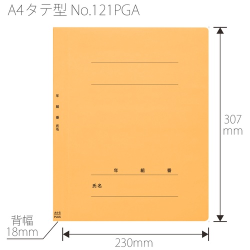 ●外形寸法(縦)[mm]:307●外形寸法(横)[mm]:230●色:イエロー●背幅[mm]:18●表紙厚[mm]:0.5●穴数[穴]:2●穴間隔[mm]:80●規格:A4-S●材質:表紙=ポリプロピレン(ノンステッチ加工)、とじ具=ポリプロピレン(3つ山ストッパー)●年・組・番・氏名の記入欄付 ●最小出荷単位: 1