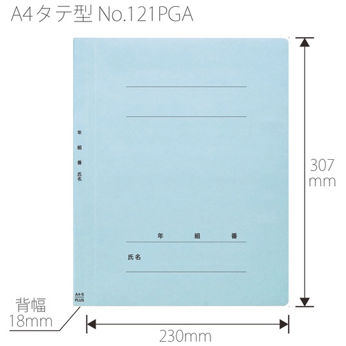 ●外形寸法(縦)[mm]:307●外形寸法(横)[mm]:230●色:ロイヤルブルー●背幅[mm]:18●表紙厚[mm]:0.5●穴数[穴]:2●穴間隔[mm]:80●規格:A4-S●材質:表紙=ポリプロピレン(ノンステッチ加工)、とじ具=ポリプロピレン(3つ山ストッパー)●年・組・番・氏名の記入欄付 ●最小出荷単位: 1