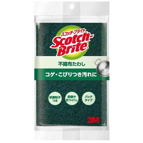 不織布タイプのキッチン用たわし。研磨粒子をコーティングしたポリエステル不織布が、ガンコなサビ、汚れを簡単に落とします。