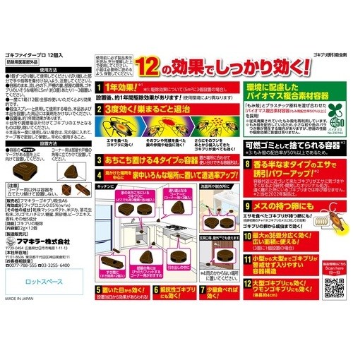 ●入数:12個●用途:ゴキブリ駆除●質量:150g●有効期間:約1年間(使用環境により異なります)●製造国:日本●防除用医薬部外品:該当 ●最小出荷単位: 1