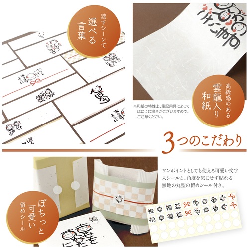 ●規格:縦82mm×横210mm●種別:気持ち●付属品:留めシール(和紙)40片付き●材質:美濃和紙(60g/m2) ●最小出荷単位: 1