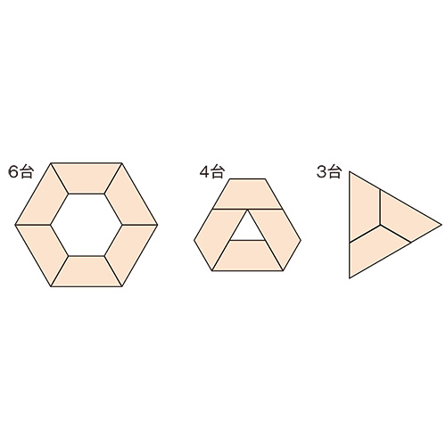 組み合わせ自由な台形テーブル。スタッキング可能で収納も省スペースに。天板の高さが330mmと低く、床に座っても使用できる高さです。