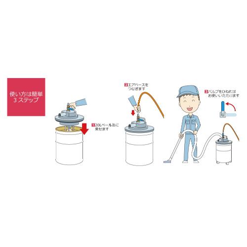 ●メーカー…アクアシステム●型番…APPQO400S●用途…火気厳禁(防爆)エリアでの清掃、液体や切粉などの回収作業に●仕様…エアー式●最大吸入量…60L/min●空気消費量…315L/min●使用可能粘度…3,000cP●推奨供給圧力…0.4~0.6MPa●吸入揚程…2m●使用可能オイル粘度…3000cP●オイルストッパー…無●ホース長…2m●材質…本体・ノズル:アルミニウム/SUSパッキン:NBRホース:PVC●重量…4.5kg●使用コンプレッサー…2.25kW●回収専用(一般油・オイル・切粉など)●電気ではなくエア駆動のため連続して使用でき、現場でオイルはもちろん、火気厳禁(防爆)エリアでも漏電せず安心●市販の20Lペール缶に乗せるだけ。●オイル・切削油・ゴミ・切粉(100μm以上1cm以下)●3馬力(2.25kw)以上のエアコンプレッサで使用可能●缶を替えれば分別回収も可能●液体満タン時の自動ストップ機能なし。●本体丸洗い可能。●※ペール缶は別売です。●参考在庫数・商品詳細・サイズ情報はメーカー(参考)URLからもご確認いただけます。 ●最小出荷単位: 1