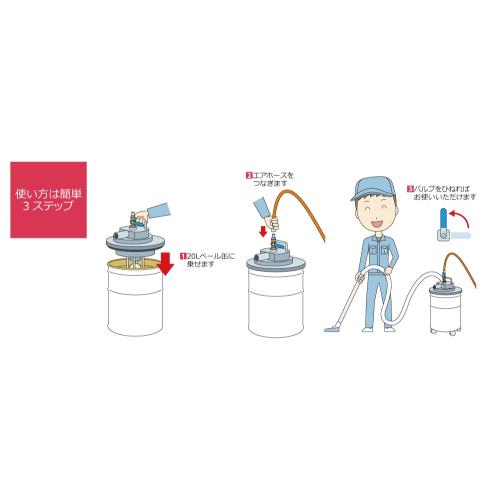 ●メーカー…アクアシステム●型番…APPQO600●用途…火気厳禁(防爆)エリアでの清掃、液体や切粉などの回収作業に●仕様…エアー式●最大吸入量…90L/min●空気消費量…475L/min●使用可能粘度…3,000cP●推奨供給圧力…0.4~0.6MPa●吸入揚程…2m●オイルストッパー…有●ホース長…2m●材質…本体・ノズル:アルミニウム/SUSパッキン:NBRホース:PVC●重量…5.6kg●付属品…主ノズル、角ノズル●使用コンプレッサー…3.75kW●回収専用(一般油・オイル・切粉など)●電気ではなくエア駆動のため連続して使用でき、現場でオイルはもちろん、火気厳禁(防爆)エリアでも漏電せず安心●市販の20Lのペール缶に乗せるだけ。●液体満タン時の自動ストップ機能付。●サイレンサー装備で低騒音●ホースの取り回しが楽なスイベル継手付き●5馬力(3.75kw)以上のエアコンプレッサで使用可能●エアカプラ30PM付き●本体丸洗い可能。●※粉塵爆発を起こす危険性のあるもの、引火性液体にはご使用いただけません。●※ペール缶は別売です。●参考在庫数・商品詳細・サイズ情報はメーカー(参考)URLからもご確認いただけます。 ●最小出荷単位: 1