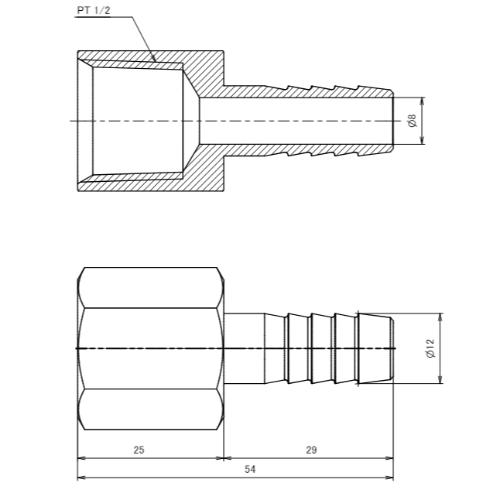 Rc1/2 inx12.0mm雌ねじステム(ステンレス製