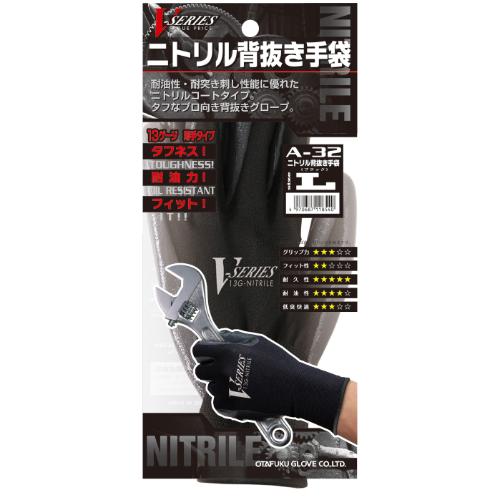 ●メーカー…おたふく手袋●型番…A-32●サイズ…L●全長(mm)…230●掌周り(mm)…176●中指長さ(mm)…77●材質…手袋:ポリエステル100%掌部:ニトリルゴム●厚み(mm)…0.9●色…黒●仕様…薄手タイプ/耐油性・耐突き刺し性能に優れたニトリルコートタイプ●通気性がよくゴム部分はグリップ力、スベリ止め効果に優れた作業性の高い手袋です。●参考在庫数・商品詳細・サイズ情報はメーカー(参考)URLからもご確認いただけます。 ●最小出荷単位: 1