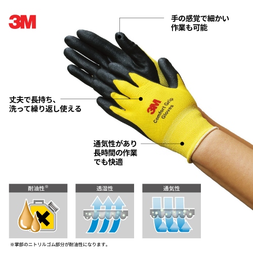 ●メーカー…3M●型番…GLOVE YEL●サイズ…XL●全長(mm)…225●掌周り(mm)…215●中指長さ(mm)…80●厚み(mm)…1.0●材質…ナイロン100%掌部:発泡ニトリルゴム●ゲージ…15ゲージ●カラー…イエロー●手袋をしたままでも手の感覚で細かい作業もできます。●手にフィットするストレッチ加工がされているため、手袋をしたままストレスなく細かい作業をすることができます。●通気性があり長時間の作業でも快適●丈夫で長持ち、洗って繰り返し使える。●耐油性※掌部のニトリルゴム部分が耐油性になります。●参考在庫数・商品詳細・サイズ情報はメーカー(参考)URLからもご確認いただけます。 ●最小出荷単位: 1