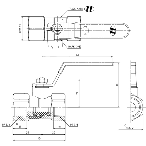 G3/8xRc3/8 inゲージ用ボールバルブ(真鍮製