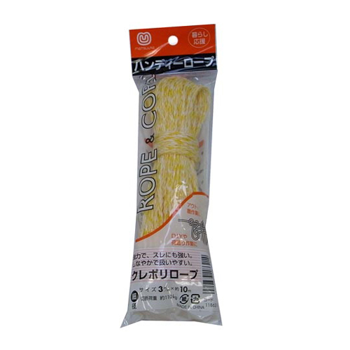 ●サイズ…φ3mm×10m●引張強度…1.07kN●材質…ポリエチレン、ポリエステル●構造…三つ打ち●カラー…黄●重量(g)…64●結束や荷物の固定に。●強力でスレに強く、しなやかで扱いやすいロープです。●参考在庫数・商品詳細・サイズ情報はメーカー(参考)URLからもご確認いただけます。 ●最小出荷単位: 1