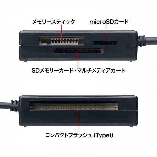 ●メーカー…サンワサプライ●型番…ADR-3TCML40BKN●コネクタ…USB Type-C●インターフェイス…USB3.2 Gen1/USB3.1 Gen1/USB3.0●対応OS…Windows 11・10・8.1・8・7、macOS 12・11、macOS 10.12~10.15、Mac OS X 10.10~10.11iPadOS 13~15、Android 6~11※iPadOSについてはType-Cポート搭載のiPad Proのみの対応です。●スロット…SDカード×1、microSDカード×1、メモリースティック×1、コンパクトフラッシュ×1●ケーブル長…10cm●サイズ…59.5(W)×59(D)×16(H)mm●重量…35g●環境条件…動作時:温度0℃~40℃、湿度0%~80%保管時:温度0℃~45℃●4スロットでいろいろなメディアが読めるコンパクトカードリーダーです。●アイコンに迷わない1スロット認識タイプです。 ●USB3.2 Gen1(USB3.1/USB3.0)(5Gbps)(理論値)の転送速度に対応したType-Cカードリーダーです。※USB3.1 Gen2には対応していません。●Windows&Mac両対応です。 ●ケーブル紛失の心配がないケーブル一体型です。●参考在庫数・商品詳細・サイズ情報はメーカー(参考)URLからもご確認いただけます。 ●最小出荷単位: 1