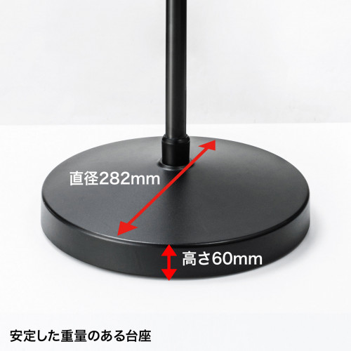 ●メーカー…サンワサプライ●型番…MR-TABST20●※注意※…【お客様組立品】●カラー…ブラック●サイズ…外寸/直径282×H900~1440(支柱)mmタブレットホルダーサイズ/135~180mm対応タブレット寸法/W135~180、D10mm以内支柱サイズ/直径22mm上部/直径6mm●材質…本体/スチール(エポキシ樹脂粉体塗装)ホルダー/PC(ポリカーボネート)●重量…約5.5kg●出荷形態…ノックダウン組立式●総耐荷重…1.5kg●iPad mini、iPad、iPad Air、iPad Pro・タブレット用スタンドです。●使用する高さに合わせて上下に調節でき、任意の位置で固定することができます。●iPad・タブレットが見やすい位置に角度を調整することができます。●iPad・タブレットをホルダーに取付けたまま、縦、横に360°回転できます。●ホルダーは取り外しができます。●iPad・タブレットをホルダーに取り付けたままで縦、横の回転ができます。(360°回転)●挟み込みサイズ135~180mm、対応画面目安4.5~11インチです。●台座は安定した重量があります。円盤の高さは60mmです。●参考在庫数・商品詳細・サイズ情報はメーカー(参考)URLからもご確認いただけます。 ●最小出荷単位: 1