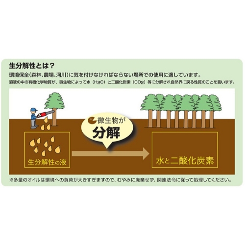 ●メーカー…イチネンケミカルズ●型番…000821●商品名…生分解性グリーススプレーEX●内容量…420ml●使用温度範囲…-10~150℃●色…褐色●生分解率…60%以上(OECD301C/28日間)●用途…農業機械、林業機械などの潤滑、防錆、整備、メンテナンス●各種農業機械(トラクター、コンバイン、チェーンソー、刈払機)の回転部、摺動部の潤滑に●生分解性グリース使用で環境にやさしいグリーススプレー●スプレー原液は生分解率60%以上(OECD301C/28日間)の生分解性なので環境にやさしい潤滑剤です。●ドアヒンジ、シャッター、各種チェーン等の潤滑に●環境保全(森林、農場、河川)に気を付けなければならない場所での使用に適しています。●第4類第三石油類 非水溶性 210ml 危険等級Ⅲ●生分解性とは:環境保全(森林、農場、河川)に気を付けなければならない場所での使用に適しています。溶液の中の有機化学物質が、微生物によって水(H2O)と二酸化炭素(CO2)等に分解され自然界に戻る性質のことをいいます。※多量のオイルは環境への負荷が大きすぎますので、むやみに廃棄せず、関連法令に従って処理してください。●参考在庫数・商品詳細・サイズ情報はメーカー(参考)URLからもご確認いただけます。 ●最小出荷単位: 1