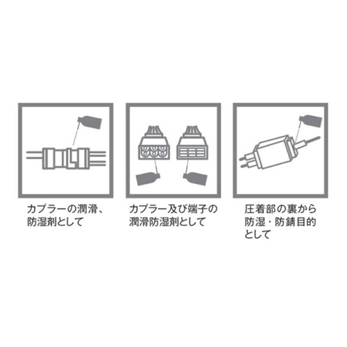 ●メーカー…イチネンケミカルズ●型番…000285●内容量…180ml●使用温度範囲…-55~130℃●色…白●用途…・自動車・船舶・各種機械のカプラー及び端子の 潤滑防湿剤・圧着部の裏から防湿・防錆●基油…合成油●ちょう度…約290●融着荷重…1236N●増ちょう剤…リチウム石鹸●耐熱性…130℃●JIS分類…2号●塩水噴霧…120時間以上●通電状態を改善し、導電性を回復します。●PTFE配合でカプラーの着脱を容易にし、端子の破損などを防ぎます。●各種機械のカプラーハウジング用潤滑・防錆剤です。●高湿環境でのカプラーへの湿気の進入を防止します。●第4類第一石油類 非水溶性 90ml 危険等級Ⅱ●参考在庫数・商品詳細・サイズ情報はメーカー(参考)URLからもご確認いただけます。 ●最小出荷単位: 1