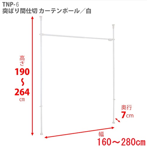 ●メーカー…平安伸銅工業●型番…TNP-6●※注意※…【お客様組立品】●サイズ(W×D×H)mm…1600~2800×70×1900~2640●耐荷重(kg)…6●材質…パイプ類:鉄・エポキシ樹脂粉体塗装樹脂部品:ABS樹脂・PE樹脂・PP樹脂・合成ゴムねじ類:鉄・メッキ●重量…2.85kg●取付寸法…取付幅:1600~2800mm取付高さ:1900~2640mm●床、天井面を傷つけない突ぱりジャッキ式●280cmまでお部屋の間仕切りや目隠しに対応!●工具不要●カーテンリング24個付●カーテン丈250cmまで取り付け可能●参考在庫数・商品詳細・サイズ情報はメーカー(参考)URLからもご確認いただけます。 ●最小出荷単位: 1