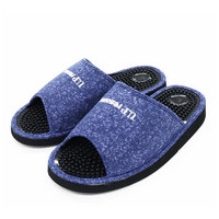 丈夫で通気性がよいシャンブレー生地のスリッパ。