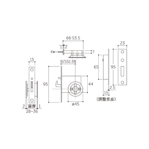 28-40/38mmケース引戸鎌錠(片サムターン/GB