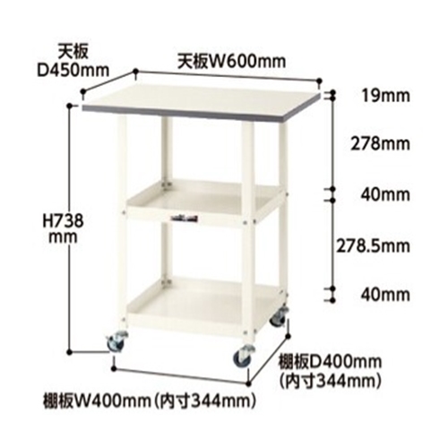 ●メーカー…山金工業●型番…HTC-6045W●※注意※…【お客様組立品】●サイズ…600(W)×450(D)×738(H)mm●重量…10.6kg●材質…脚部:スチール 天板:低圧メラミン●耐荷重…50kg(自重含む)●天板厚…19mm●EA956TA-2シリーズの天板奥行寸法に対応しており、補助テーブルとして最適。●作業用・移動用として自由なレイアウトでお使いいただけます。●作業者の周りをスムーズに動き回れるよう、クッション性に優れたエラストマー車輪を採用。●参考在庫数・商品詳細・サイズ情報はメーカー(参考)URLからもご確認いただけます。 ●最小出荷単位: 1