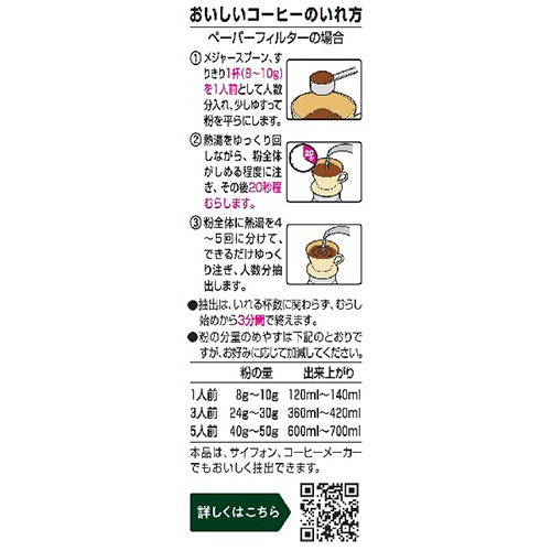 挽きたての香りをそのままパックに。重厚なコクと上品な酸味を活かした味わい。