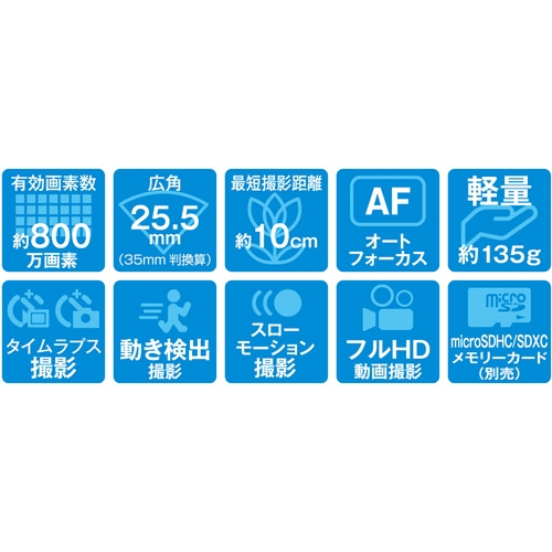 ●型番…※ESCOオリジナルセットKC-WP06●〈セット内容〉…・デジタルカメラ・microSDカード(32GB)・液晶保護フィルム●有効画素数…約800万画素●ズーム…デジタル4倍●焦点距離…25.5mm(35mm換算)●液晶サイズ…2.8型TFT+1.5型(前面)TFT●動画撮影…2.7K:2688×1520FullHD:1920×1080HD:1280×720VGA:640×480●使用バッテリー…リチウムイオン充電池(付属:EA759GB-52)●サイズ…105(W)×68(D)×33(H)mm●重量…135g(本体のみ)●総画素数…833万画素●レンズ…f=3.37mm F2.2●撮影距離…静止画:0.1m~∞ 動画:1.5m~∞●記録媒体…microSDHC/SDXCメモリーカード(別売)※microSDカード(32GB)(付属)●ファイル形式…静止画:JPG動画:MJPEG(AVI)音声:PCM●静止画サイズ…48M(補間)、44M(補間)、36M(補間)、24M(補間)、20M(補間)、16M(補間)、12M(補間)、10M(補間)、7M-Wide(補間)、5M、3M、2M●防水性能…IP58●シャッタースピード…1/8000秒~1/15秒●ISO感度…オート、100、200、400●セルフタイマー…オフ、2秒、5秒、10秒●内蔵ライト…LED●露出補正…±3EV 1EVステップ●ホワイトバランス…オート、昼光、曇り、蛍光灯、電球●手ぶれ軽減…電子式●入出力ポート…USB2.0●DPOFプリント…非該当●ダイレクトプリント…非該当●付属品…リチウムイオン充電池、ストラップ、USBケーブル(Type-A to Type-C)、取扱説明書●水深3.5mまで対応するIPX8の防水性能と、IP5Xの防塵性能を備えたコンパクトデジタルカメラです。●水に濡れることを心配せずに、海などで撮影を楽しむことができます。カメラの前面にも液晶モニターが付いているので自撮りに便利です。●軽量コンパクトで日常の景色を気軽に撮るお散歩カメラとしてお使いいただけます。●焦点距離25.5mm(35mm判換算)の広角レンズ採用で、広い範囲を写すことができます。●最短で約10cm まで被写体に寄って接写することができます。●他にもタイムプラス撮影、動き検出機能、スローモーション撮影など多機能なカメラです。●PCにつなげてWEBカメラとしても使用できます。●砂やホコリに強い防塵設計。粉塵が舞う工事や建設現場でもお使いいただけます。砂がついても、泥まみれの手で触っても、水洗いできるので安心です。●カメラの前面にも液晶モニターが付いているので自撮りに便利です。●参考在庫数・商品詳細・サイズ情報はメーカー(参考)URLからもご確認いただけます。 ●最小出荷単位: 1