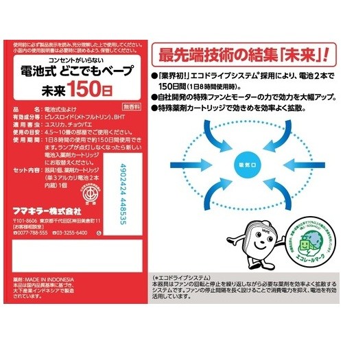 150日間※、電池・薬剤の交換なし!虫の気になるシーズンを通して使用できます。※1日8時間使用時