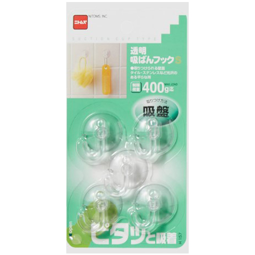 ●メーカー…ニトムズ●型番…H157●耐荷重(kg)…0.4●吸盤サイズ(φmm)…30●口幅(mm)…12●材質…吸盤:塩化ビニル樹脂フック:スチロール樹脂●入数…50個●サイズ…30×35×25mm●吸盤タイプ●ガラス、タイル面にピタッと吸着。●取り付けも取り外しも簡単です。●透明タイプで目立ちません。●参考在庫数・商品詳細・サイズ情報はメーカー(参考)URLからもご確認いただけます。 ●最小出荷単位: 1