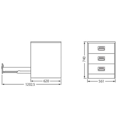 561x620x740mm/3段キャビネット