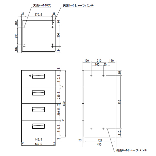 ●メーカー…ダイシン工業●型番…V445-409D●外寸法(W×D×H)mm…450×450×890●重量(kg)…38.9kg●カラー…ホワイト●耐荷重…24kg/段●本体材質…スチール●内寸法(W×D×H)mm…373×402×183(最上段のみH187)●下置専用●キャビネット型●棚板4枚、オールロック、ラッチ、セーフティロック付●専用ベースが必要です。(別売)●省スペースで医療用品のストックに最適なサイズになります。●商品は完成品です。●上下連結用のねじが1セット付属しています。●※引出しを開けた場合又は、単体使用時に倒れるおそれのある製品です。特に厳重な転倒防止対策が必要です、●参考在庫数・商品詳細・サイズ情報はメーカー(参考)URLからもご確認いただけます。 ●最小出荷単位: 1