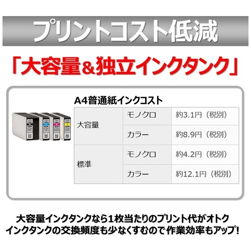 ●外形寸法(幅)[mm]:463●外形寸法(奥)[mm]:389●外形寸法(高)[mm]:260●質量[kg]:約10.6●色:ブラック●スキャン性能[dpi]:1200×1200●インターフェース:IEEE802.11n/g/b、Hi-Speed USB●消費電力:約27W●待機電力:約0.9W●保証期間:1年間●付属品:セットアップ用インクタンク、セットアップCD-ROM、設置マニュアル他、モジュラーケーブル、電源ケーブル●電波法適合商品:技適マーク ●最小出荷単位: 1