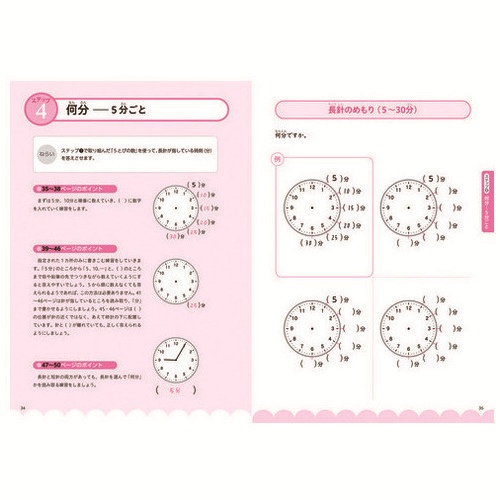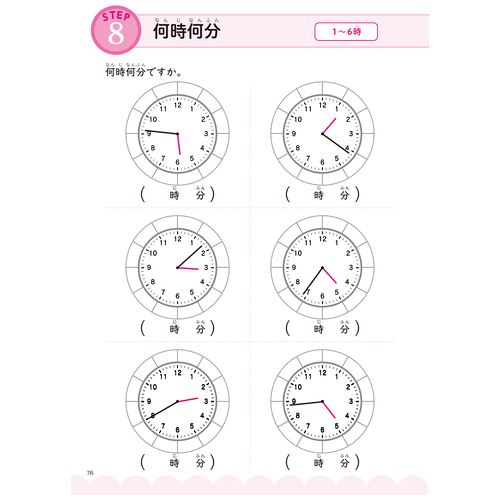 網目のようなスモールステップで時計の読み方を学習。シンプルな出題形式で集中して取り組めます。