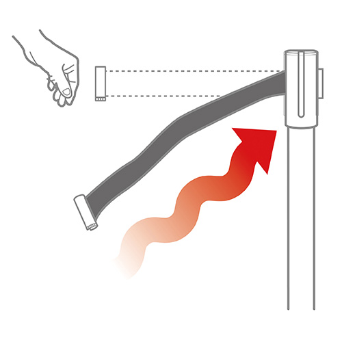 ブレーキが働き、ベルト暴れがなくゆっくり巻き戻る。