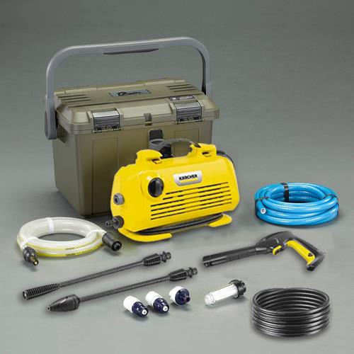 ●メーカー…ケルヒャージャパン(KARCHER)●型番…ESCOオリジナルセット●商品名…K2リトルプレミアム※ESCOオリジナルセット●用途…自転車、軽自動車や普通乗用車、窓や網戸などに●電源…100V(50/60Hz)●吐出水量(最大)…330L/h●吐出圧力(最大)…8MPa●モーター出力…1.0kW●消費電力…1000W●定格使用時間…最大1時間●給水温度…最大40℃●サイズ…本体:380(W)×197(D)×264(H)mmケース:538(W)×359(D)×347(H)mm●電源コード長…5m●本体重量…3.7kg●ケース容量…38L●付属品…高圧ホース6m、高圧ホースフック、ワンジェットノズル、サイクロンジェットノズル、トリガーガン、トリガーガンホルダー、本体側カップリング、逆止弁付吸水ホース3m、吸水ホース用フィルター、耐圧糸入りカットホース、万能金口、ホースカプラー、収納ケース●防水性能…IPX5●女性にも扱いやすい軽量&コンパクトタイプの高圧洗浄機です。●本体と高圧ホースの取付部がワンタッチ、工具なしで簡単接続。●標準装備品のサイクロンジェットノズルは、コケなどのこびりついた汚れも剥ぎ取り、頑固な汚れも楽に落とせる。●自吸が可能なので、水道がない場所でも使用できます(ため水を吸い上げる高さは、0.5m)。●ガンやノズル、電源ケーブル、その他はんざつになりやすい高圧ホースも本体に収納でき、よりスマートに保管ができます。●洗浄剤吸引ホース付き洗浄剤の使用が簡単です。 ケルヒャー専用洗浄剤 (別売り) は、汚れをしっかり落とすだけでなく、洗浄面を保護してキレイな状態を保つ効果があります。●組み合わせて使用できる商品は下記のその他関連を参照ください。●参考在庫数・商品詳細・サイズ情報はメーカー(参考)URLからもご確認いただけます。 ●最小出荷単位: 1