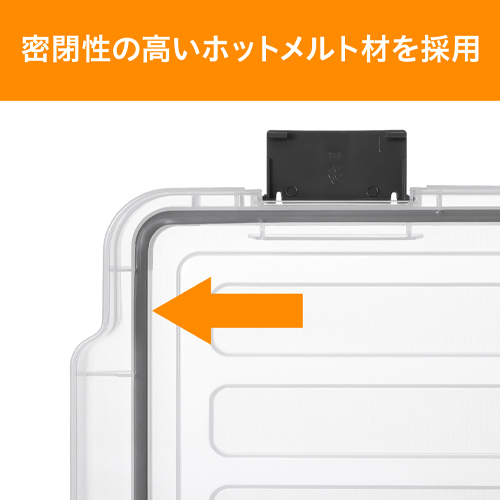 フタのフレーム内側部分にホットメルト材を採用し、密閉性を高めたコンテナです