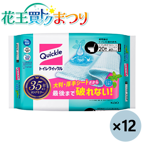 ●入数:20枚入(10枚×2個)×12パック●まとめ買い●品名:トイレ用掃除シート●種別:つめかえ用●用途:便器、便座、タンク、床、壁など、トイレ内のふきそうじ。●入数:20枚(10枚×2個)●材質:パルプ●成分:界面活性剤(アルキルグリコシド)、グリコールエーテル、安定化剤、除菌剤●液性:弱酸性●香り:ミントの香り●シートサイズ(横×縦):約300×245mm●シート1枚を半分に切って使えるミシン目入りです。●乾燥を防ぎ、品質を保持するため、必ず『881-721 トイレクイックル 本体 10枚』の本体容器につめかえてお使いください。●温水洗浄便座/暖房便座にも使えます。●『トイレクイックル』シリーズは、トイレットペーパーの日本工業規格(JIS P4501)の「ほぐれやすさ」試験による品質基準を満たしており、ご使用後トイレに流せる商品ですので、安心してお使いいただけます。 ●最小出荷単位: 1