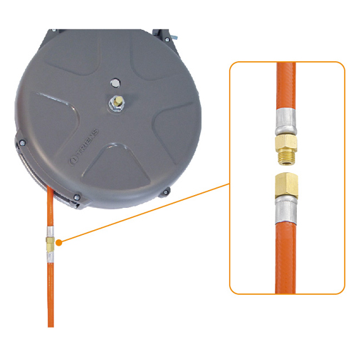 ●メーカー:三協リール(TRIENS) ●型番:SHM-310B ●使用流体:エア ●リール設置場所:屋内 ●ホース長:1次側(入力側):1m 2次側(出力側):10m ●ホース径:内径:8mm 外径:12mm ●ホース材質:ポリウレタン樹脂 ●カバー・ドラム材質:ABS樹脂 ●使用圧力:1.4MPa ●使用温度範囲:-5~50度 ●カラー:本体:グレー ホース:オレンジ ●取付ねじ:ホース1次側(入力側):オスねじ自在R3/8’’ ホース2次側(出力側):メスねじRc3/8 ●最小出荷単位: 1