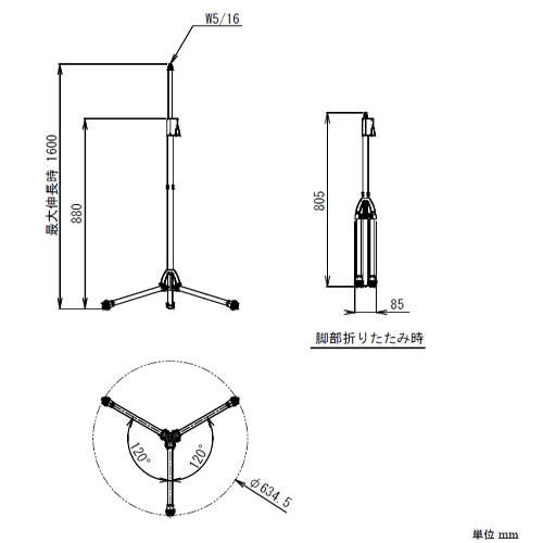 ●メーカー:ユニペックス(UNI-PEX) ●型番:MT-90 ●高さ:900~1600mm(自在調整) ●取付ねじサイズ:W5/16 ●ベース径:φ634.5mm ●重量:約1.5kg ●折畳みサイズ:φ85×805mm ●材質:パイプ:鋼製(クロームメッキ) ベース:アルミダイカスト(ブラック塗装) 脚部:鋼棒(クロームメッキ) ●高さ調節が簡単なプッシュボタン式です。 ●脚部が折りたたみ式になっています。 ●マイクホルダーはついていません。 ●最小出荷単位: 1
