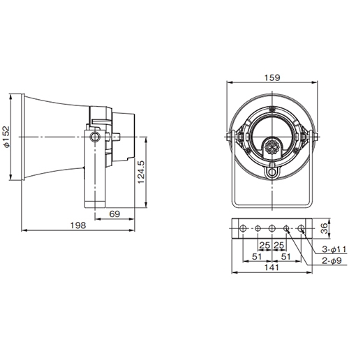 ●メーカー:ユニペックス(UNI-PEX) ●型番:CT-151 ●定格入力:5W ●定格インピーダンス:2kΩ ●再生周波数帯域:400Hz~8kHz ●IP値:65 ●サイズ:φ152×198mm ●重量:1.3kg ●取付金具:U字型ブラケットL型 ●出力音圧レベル:105dB(1W/1m) ●日本消防検定協会認定品 ●工場内及び屋外用 ●防滴型 ●最小出荷単位: 1